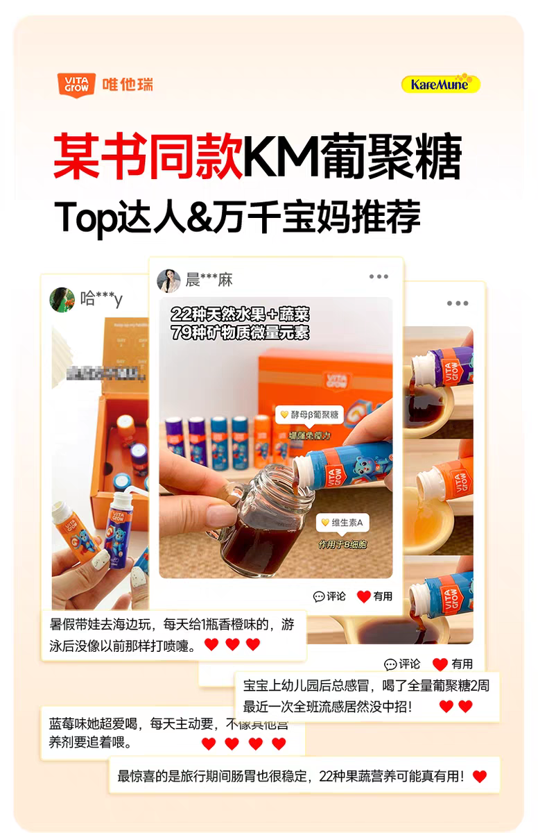 99%真实用户验证有效,咳涕少了,恢复快了! VITAGrow唯他瑞的葡聚糖产品逐渐成为儿童免疫的首选!