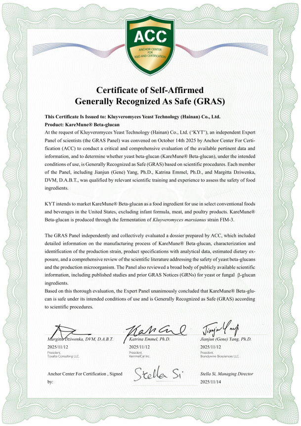 首先,亚美唯他集团自主研发核心成分KM葡聚糖Karemune®正式获得美国FDA GRAS认证,标志着其成分技术与安全性得到国际权威认可。