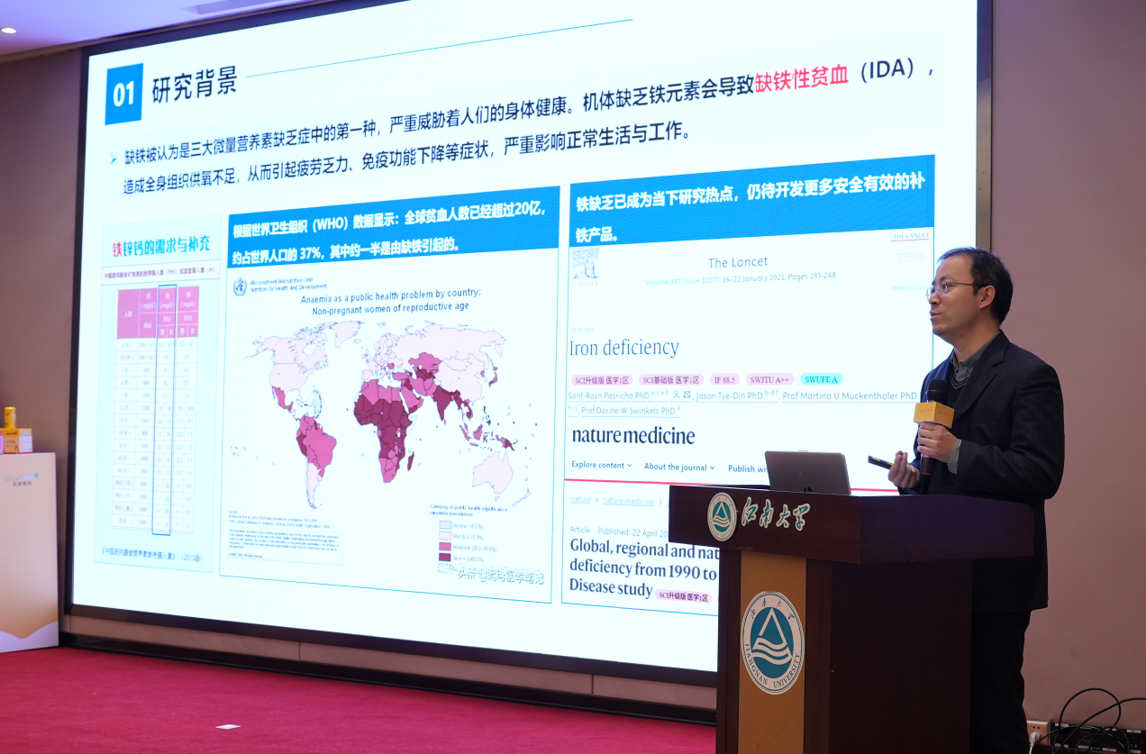 江南大学食品学院教授朱松教授现场揭秘:从成分角度看,血红蛋白肽的核心优势在于其独特的“血红素铁”形式,避开了传统补铁剂需转化、易受膳食干扰的弊端,提高了铁元素吸收的效率,且胃肠道刺激性大幅降低